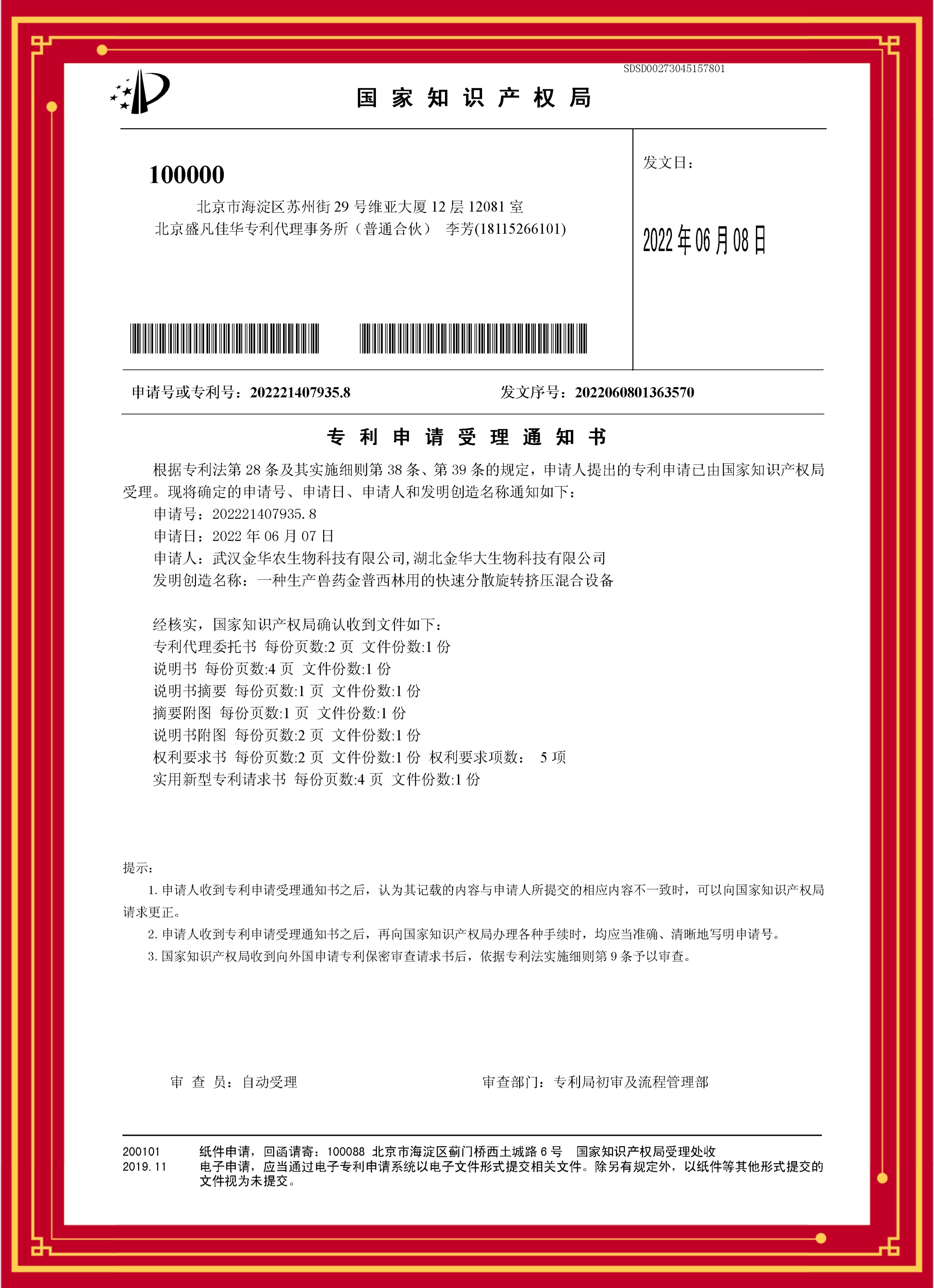 科技專利證書(藍圓瘟毒克):專利號—202220809144.1