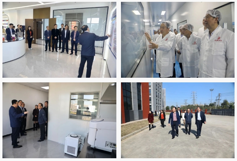 領導嘉賓一行參觀我司產(chǎn)品展示中心、質(zhì)檢中心、微生物實驗室、GMP智能車間