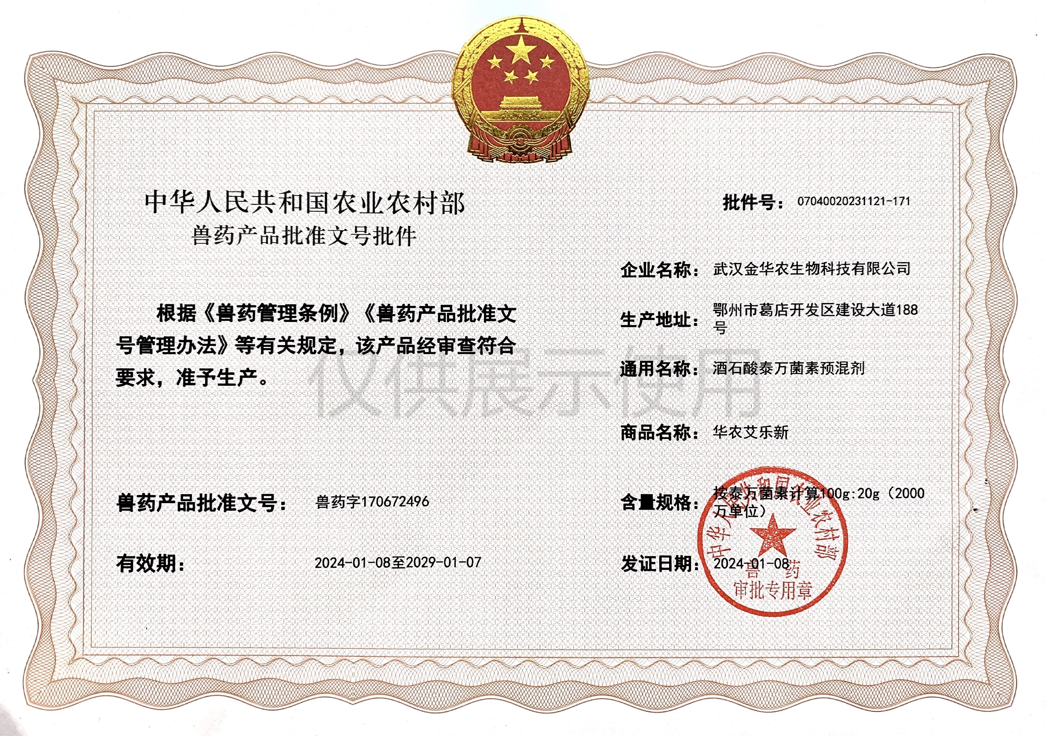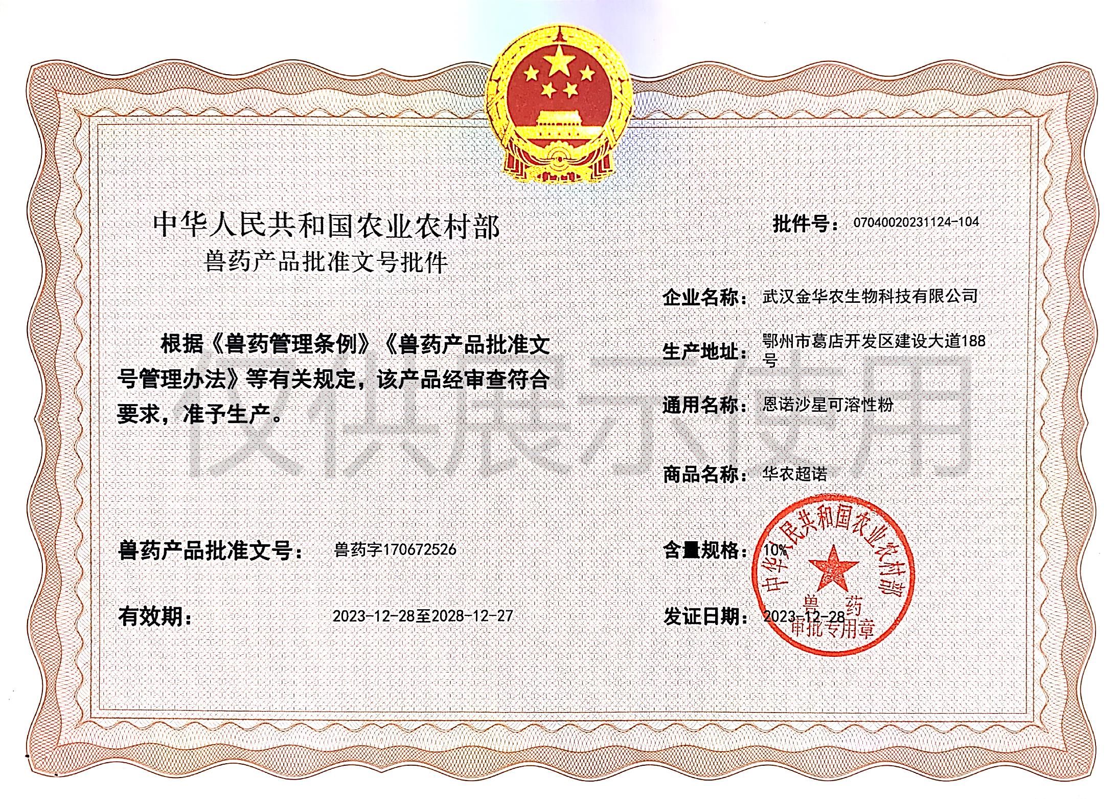 根據《獸藥管理條例》和《獸藥產品批準文號管理辦法》的規定,經農業農村部審查,準予核發武漢金華農生物科技有限公司2個新版GMP獸藥相關產品批準文號。