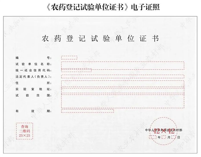 一、自2024年11月1日起,在全國范圍內推行應用農業農村部本級頒發的《農藥登記證》、《農藥登記試驗單位證書》、《肥料登記證》、《獸藥產品批準文號批件》、《國(境)外引進農業種苗檢疫審批單》共5種電子證照。電子證照與紙質證照同步制發、并行使用,具有同等法律效力。自2025年1月1日起,不再制發相應的紙質證照。