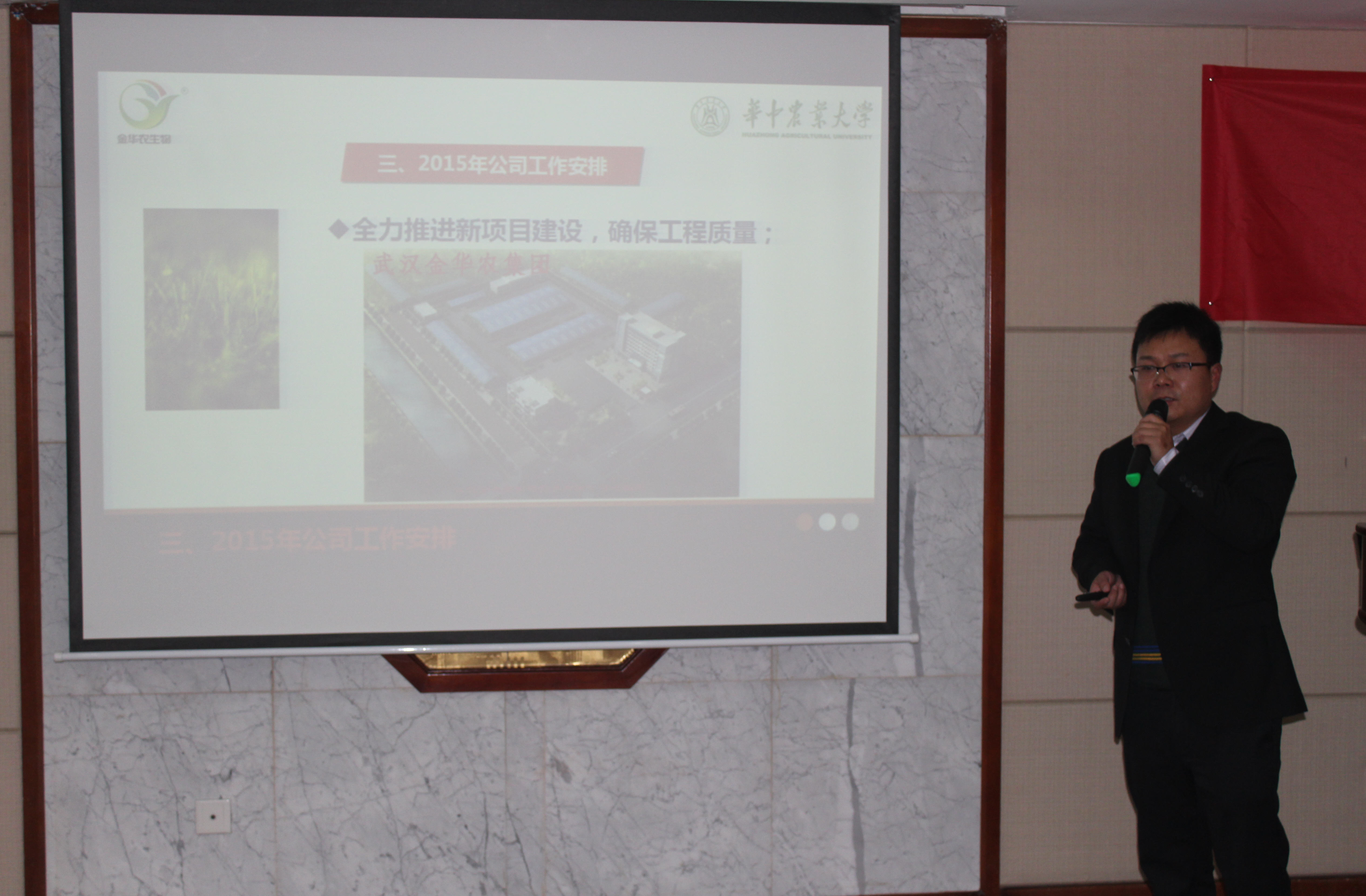 首先,徐總就2014年公司所取得的成績與進步、公司新項目的推進速度、公司深化改革后內部至外圍的發展變化、公司年度財務結算與銷售業績,向大家作了詳細報告,肯定了全體金華農人的努力付出的結果,超額完成了年初設定的銷售目標。同時向大家講述了公司2015年將有將全面深化改革,快速推進新項目的建設與運營,創新型的科技產品也將全面上市銷售。