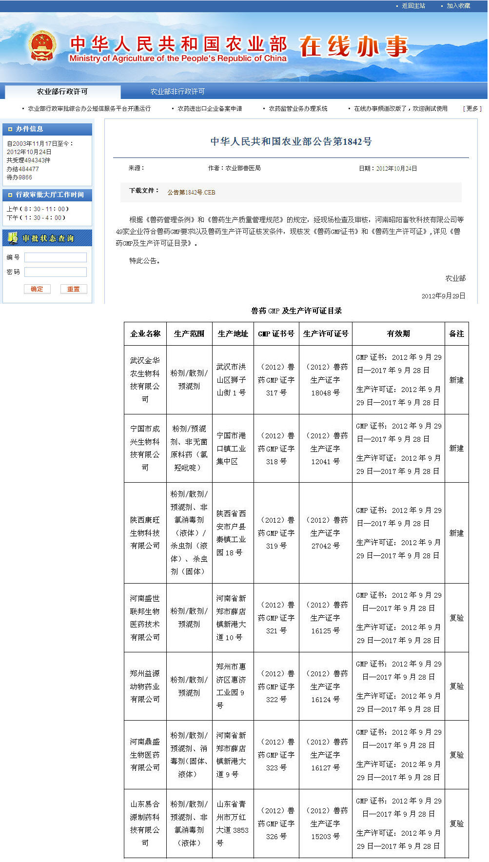 ??????(獸藥GMP證書、獸藥生產(chǎn)許可證書)