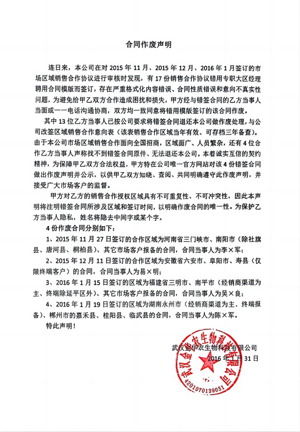 合同作廢聲明
