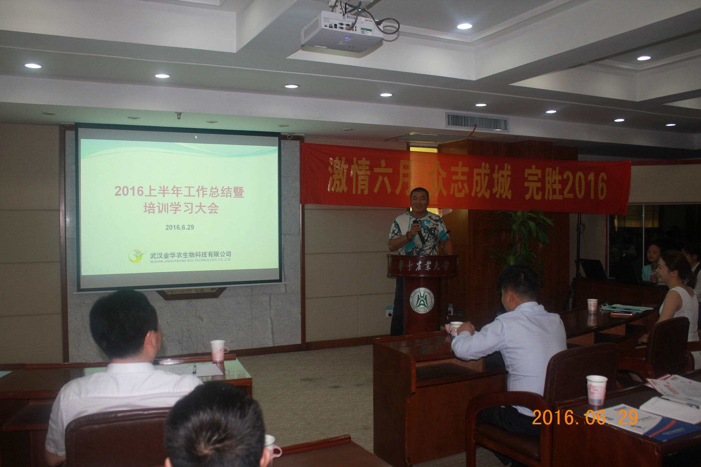 6月28日至30日,武漢金華農公司2016年上半年工作總結會議召開,公司將全員學習、拔高進步、強技能、優思想列為員工成長的重點要素,開展了從專業知識到職業素養、從實踐技能到積極人生觀的全方位學習和交流,既教給全體員工對專業知識的融會貫通和實際操作,又共同探討目標達成的具體分解實施辦法,大家受益匪淺。